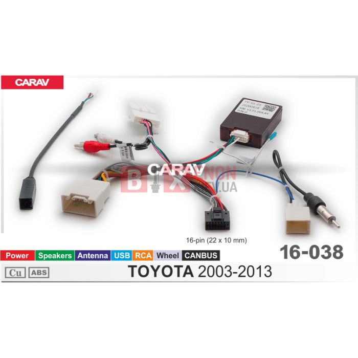 Комплект проводов для подключения 9" / 10.1" ANDROID-АВТОМАГНИТОЛ (16-pin) для TOYOTA 2003-13 / Power + Speakers + Antenna + Wheel + RCA + USB + CANBUS