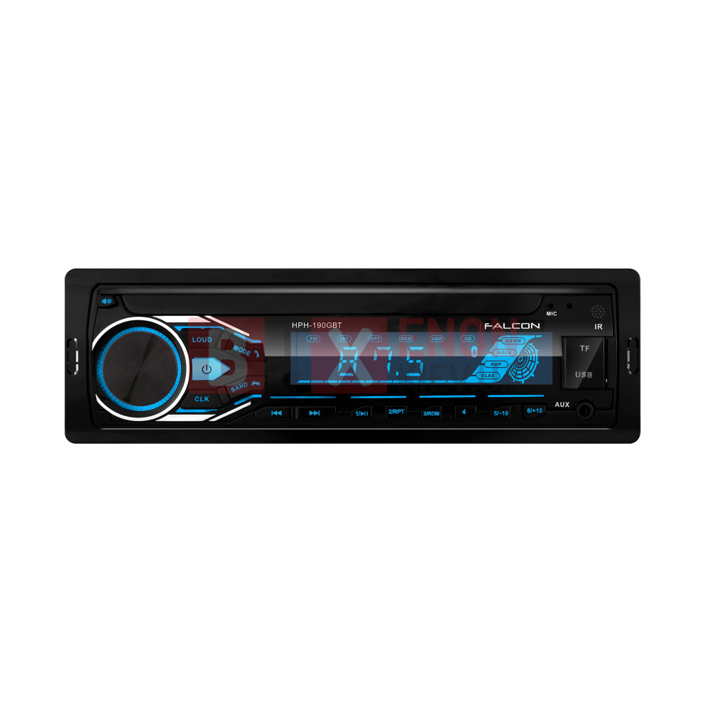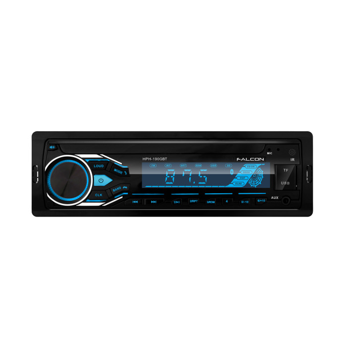 Модельный ряд 1DIN магнитофонов Falcon пополнился новинкой – HPH-190GBT. Отличительной особенностью данной магнитолы от предшественника является наличие функции цветной подсветки лицевой части устройства. Компактная магнитола имеет стандартную глубину 90 мм. Falcon HPH-190GBT имеет 4 режима настройки: Fader, Treble, Balance, Bass, а также многополосный эквалайзер. Наличие усилителя радиочастот позволяет в хорошем качестве воспринимать радиоволны. На передней панели расположены слоты под USB и SD карты, а также разъем под AUX. Многоцветная подсветка кнопок гармонично вписывается в любой интерьер автомобиля. Выходная мощность 45Вт х 4 канала позволяет создать в салоне автомобиля приятную атмосферу.