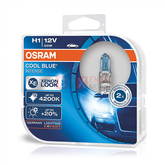 Галогенная лампа OSRAM H1 Cool Blue Intense 55W 12V 64150CBI — лампа предназначена для использования в ближнем и дальнем или противотуманном освещении автомобиля. Бело-желтый свет галогенной лампы с цветовой температурой, достигающей 4200 К, производит точно такое же впечатление, как свет стандартных ксеноновых ламп. По сравнению со стандартными галогенными лампами, лампы с покрытием колбы «COOL BLUE INTENSE» излучает на 20% больше света, чем лампы со стандартным желтым оттенком свечения. Свет этой лампы максимально приближен к естественному дневному свету, что делает его приятным для глаз и не вызывает усталости, в отличие от стандартных ламп. Галогенная лампа OSRAM H1 Cool Blue Intense 55W 12V 64150CBI — это отличное соотношение цены и качества!