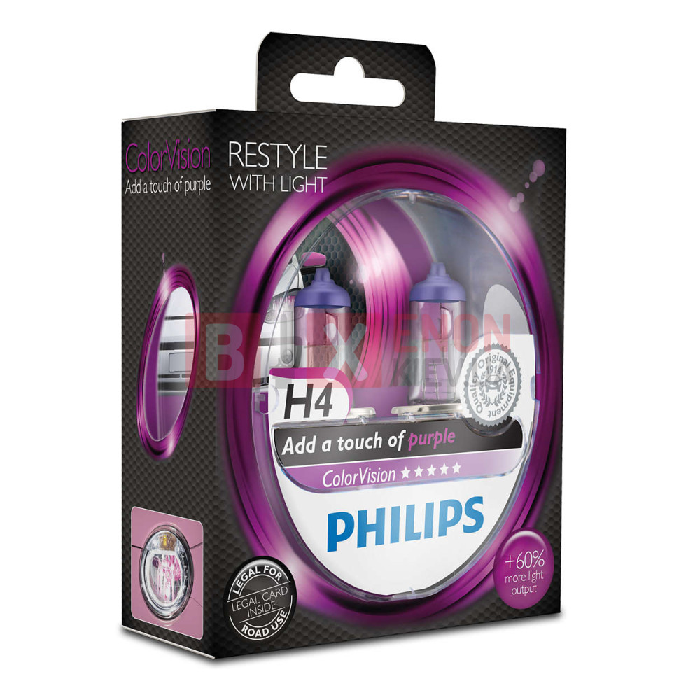 Галогенная лампа Philips H4 Color Vision Purple 60/55W 12V 12342CVPPS2 - лампа предназначена для использования в ближнем, дальнем освещении автомобиля. Прекрасный вариант для замены заводских ламп в случае их перегорания. Галогенная лампа Philips H4 Color Vision Purple 60/55W 12V 12342CVPPS2 производятся из высококачественных материалов и соответствуют самым высоким стандартам, чтобы обеспечить максимальную безопасность и комфортное вождение для автомобилистов.