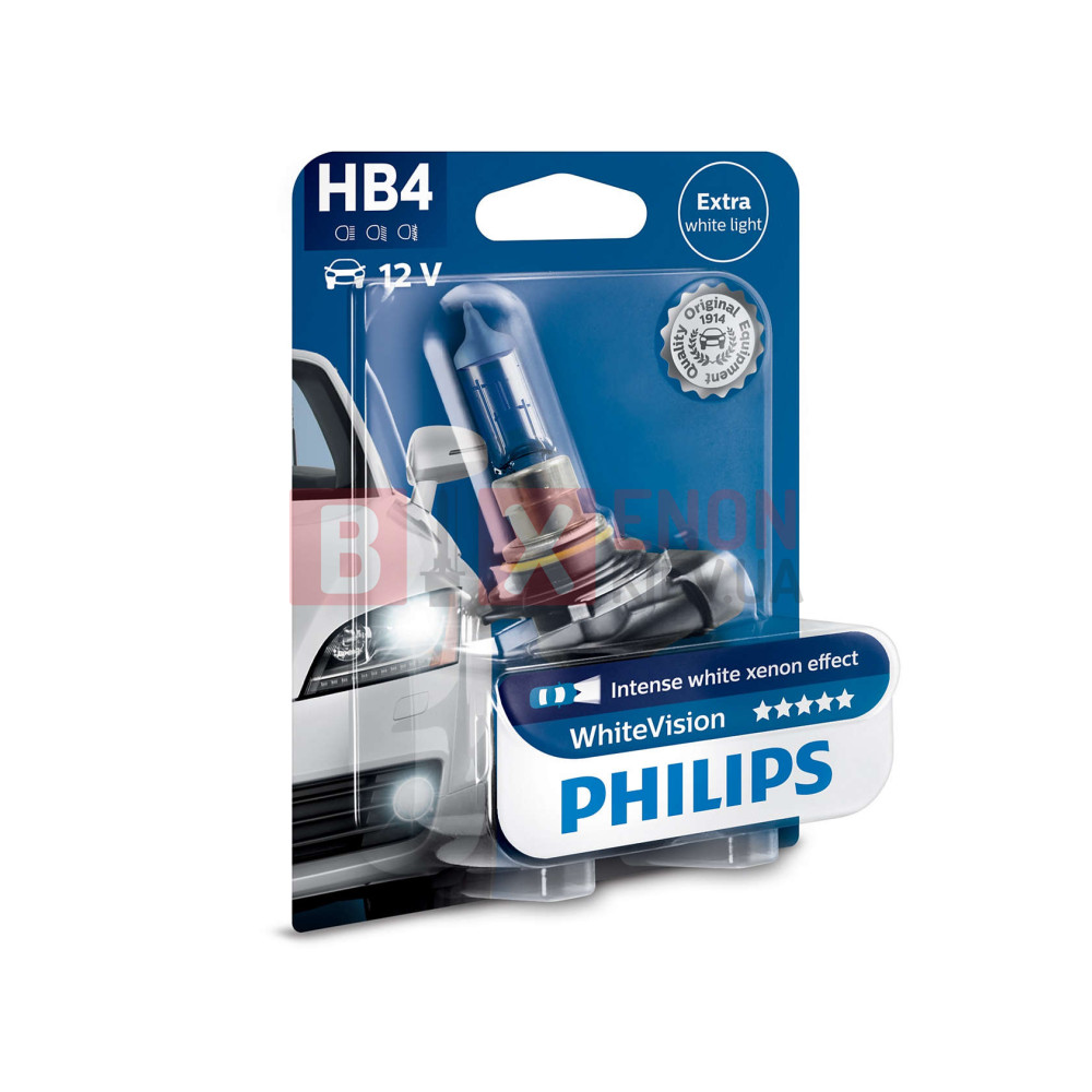 В нашем магазине «BIXENON.KIEV.UA» Вы можете приобрести галогенную лампу Philips HB4 White Vision +60% 4300K 9006BVUB1 Blister по хорошей цене с гарантией.