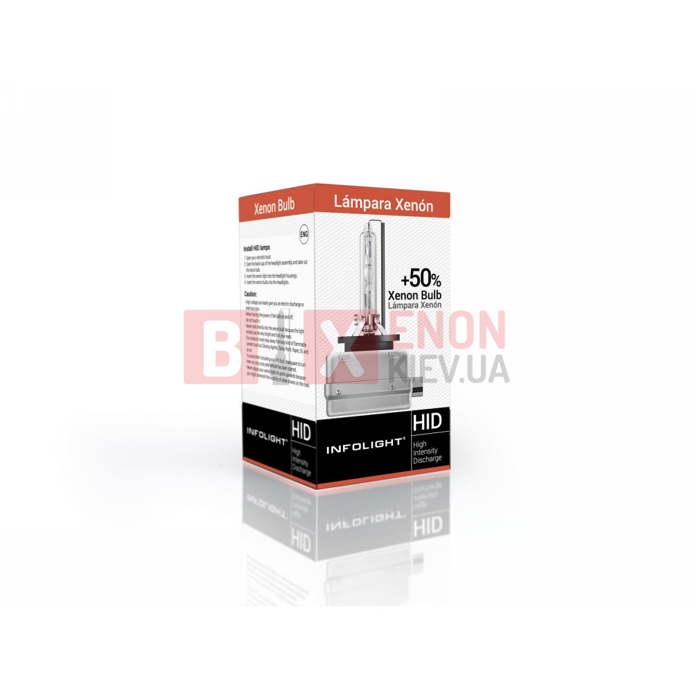 В сравнении с обычной ксеноновой лампой Infolight D3S лампа Infolight D3S +50% светит до 50% ярче и выдает более длинный световой конус при этом потребляемая мощность остается неизменной. Это говорит, что лампы Infolight D3S +50% гораздо эффективнее, чем лампы предыдущего поколения, тем самым обеспечивают более комфортное и самое главное – безопасное управление автомобилем в темное время суток. Поэтому, если Ваш автомобиль оснащен ксеноновым головным светом, и Вам нужна лампа с цоколем D3S, то Infolight D3S +50% будет оптимальным выбором!