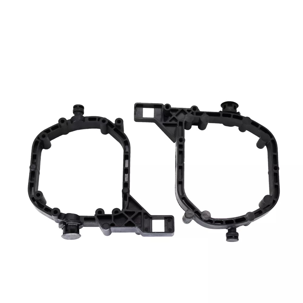 Комплект переходных рамок для замены линз для фар автомобиля значительно упрощает и ускоряет работу по установке или замене новых линз, сохраняет адаптивную функцию линз в фаре и максимально соблюдает все технические размеры и регулирует угол наклона фар автомобиля. При использовании переходных рамок линза становится на заводское место в фаре, соответственно сохраняется горизонт свечения и светотеневая граница свечения линз. Для некоторых автомобилей при использовании переходных рамок требуется минимальная доработка креплений между корпусом посадочного места штатных заводских линз и линз, которые нужно установить в фару автомобиля.