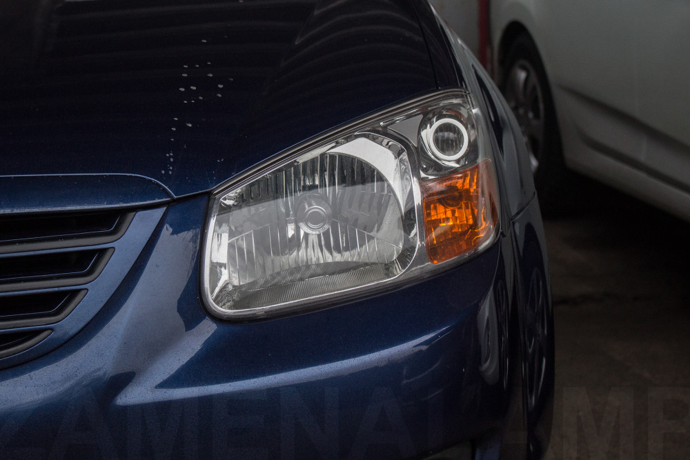 Внешний вид правой фары ДО начала работ по установке биксеноновых линз.