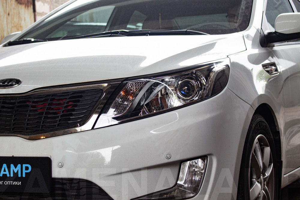 KIA RIO (3rd generation) установка биксеноновых линз Hella 5 Blue