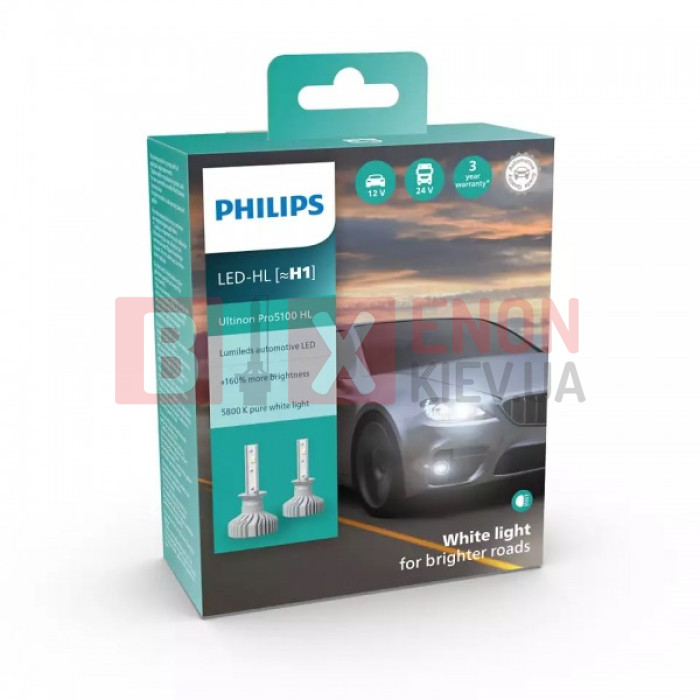 Комплект светодиодных ламп PHILIPS H1 11258U51X2 LED Ultinon Pro5100 +160% 12/24V – это LED лампы для основного освещения у автомобиля, подойдет для автомобилистов, которые хотят получить хороший качественный комплект светодиодных ламп с максимальным эффектом света. Светодиодная лампа Ultinon Pro5100 +160% легко устанавливается и подходит для замены стандартных галогеновых ламп с большинством цоколей. Корпус светодиодной лампы выполнен из сплава алюминия, обеспечивающего высокоэффективный отвод тепла, продлевает срок службы ламп. В производстве ламп соблюдены все стандарты светотеневой границы и посадочного места крепления лампы в фаре.
