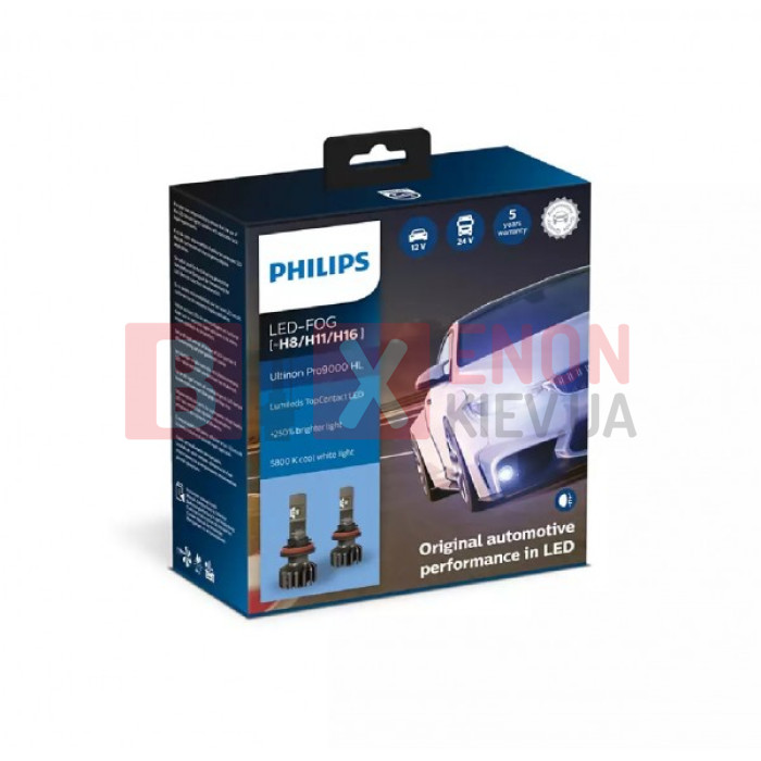 Комплект светодиодных ламп PHILIPS H8/H11/H16 11366U90CWX2 LED Fog Ultinon Pro9000 +250% 12/24V – это LED лампы для основного освещения у автомобиля, подойдет для автомобилистов, которые хотят получить хороший качественный комплект светодиодных ламп с максимальным эффектом. Светодиодная лампа Ultinon Ultinon Pro9000 +250% легко устанавливается и подходит для замены стандартных галогеновых ламп с большинством цоколей. Корпус светодиодной лампы выполнен из сплава алюминия, обеспечивающего высокоэффективный отвод тепла, продлевает срок службы ламп. В производстве ламп соблюдены все стандарты светотеневой границы и посадочного места крепления лампы в фаре.
