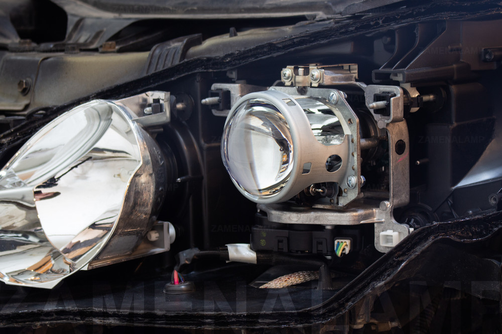 Закрепили новую биксеноновую линзу в поворотном адаптивном механизме и отрегулировали горизонт светотеневой границы света линзы.