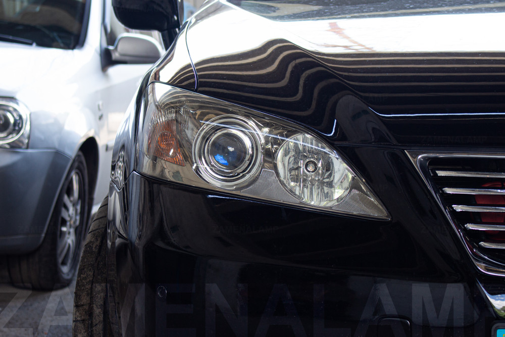 Улучшение света фар автомобиля LEXUS ES 350 с 2010 по 2012 год путем замены штатных ксеноновых моно линз на Биксеноновые линзы Hella 3 на 3.0 дюйма