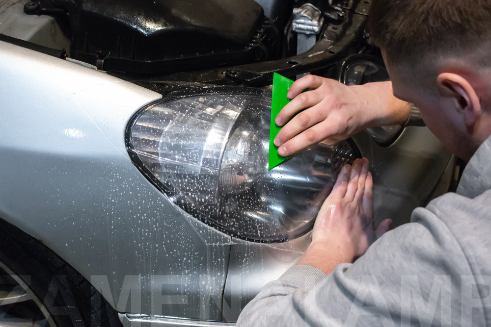 ✩ Стекла фар отшлифовали, отполировали и заклеили качественной полиуретановой пленкой SunTek - 2600 грн.