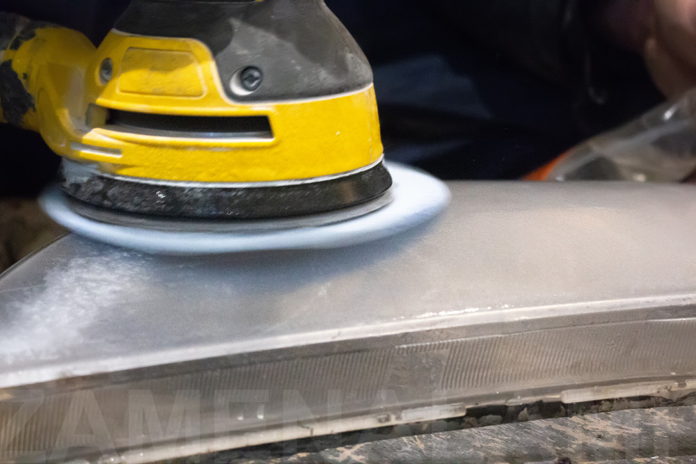 Процесс шлифовки стекла фары.