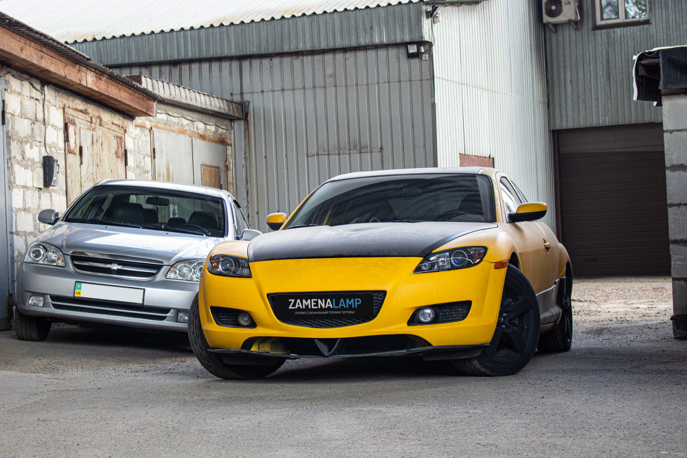 MAZDA RX-8 замена штатных линз на Hella 5 Blue