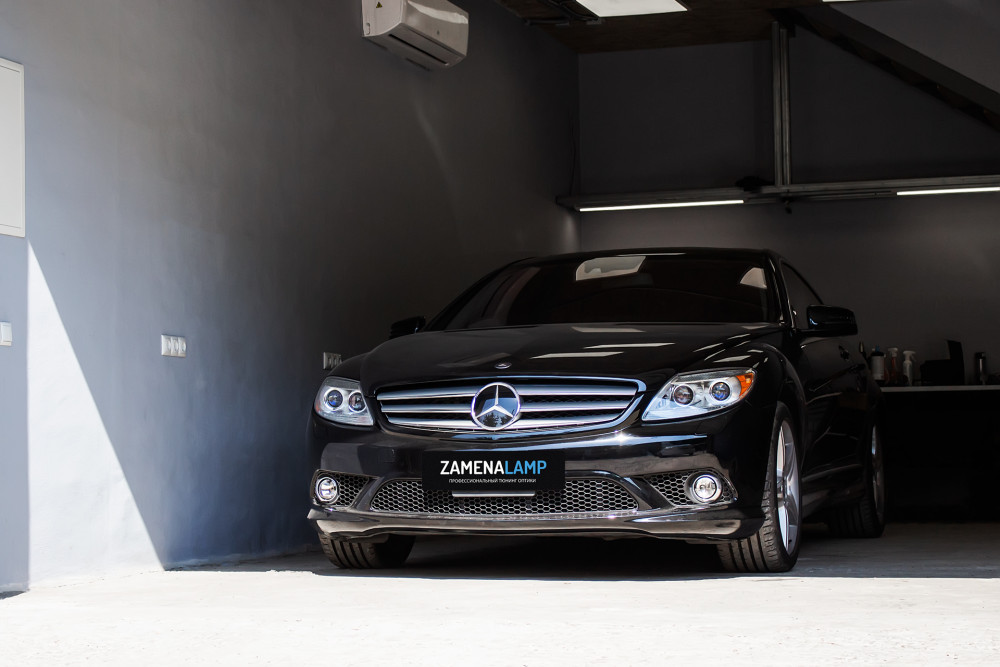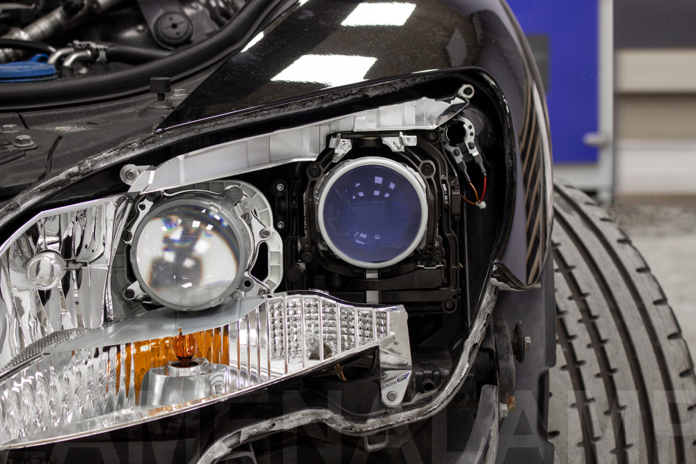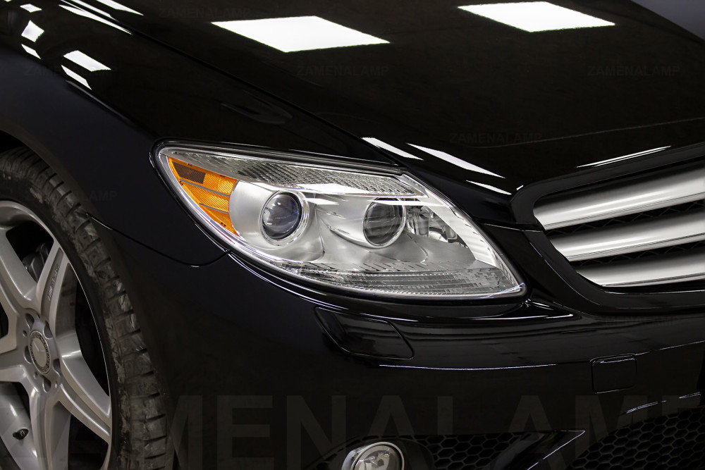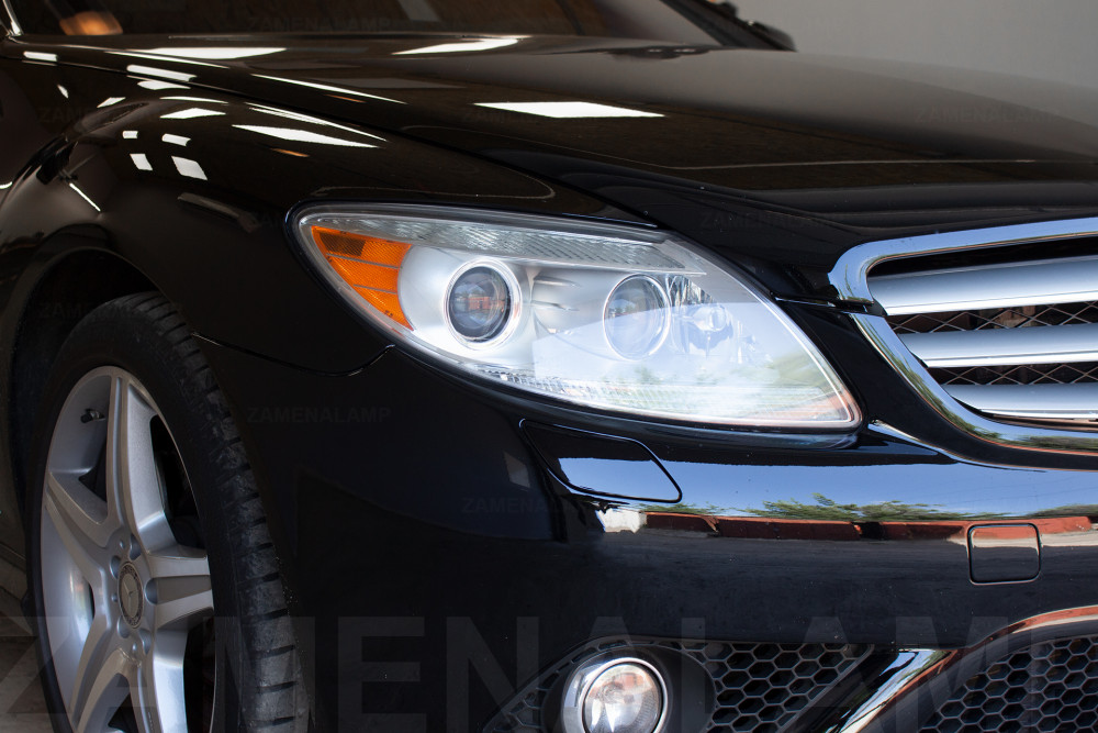 MERCEDES-BENZ C216 замена штатных линз на Hella 5 Blue