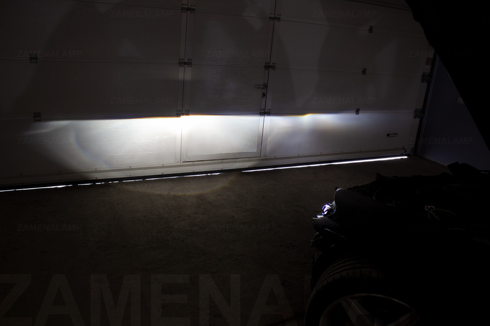 Справа штатная биксеноновая линза Bosch, слева биксеноновая линза Hella 5 Blue.