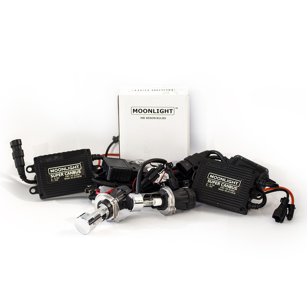 Комплект Би-ксенона Moonlight Can-Bus – используются для установки на любые автомобили, с системой контроля исправности ламп для ближнего и дальнего освещения и напряжением бортовой сети 12 В.