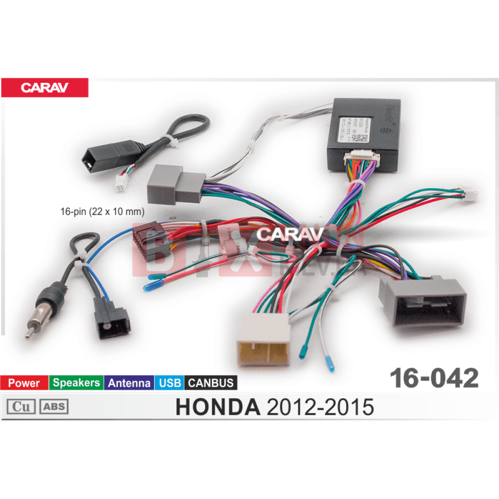 Комплект проводов для подключения 7" / 9" / 10.1" ANDROID-АВТОМАГНИТОЛ (16-pin) для HONDA 2012-2015 Питание + Динамики + Антенна + USB + CANBUS.