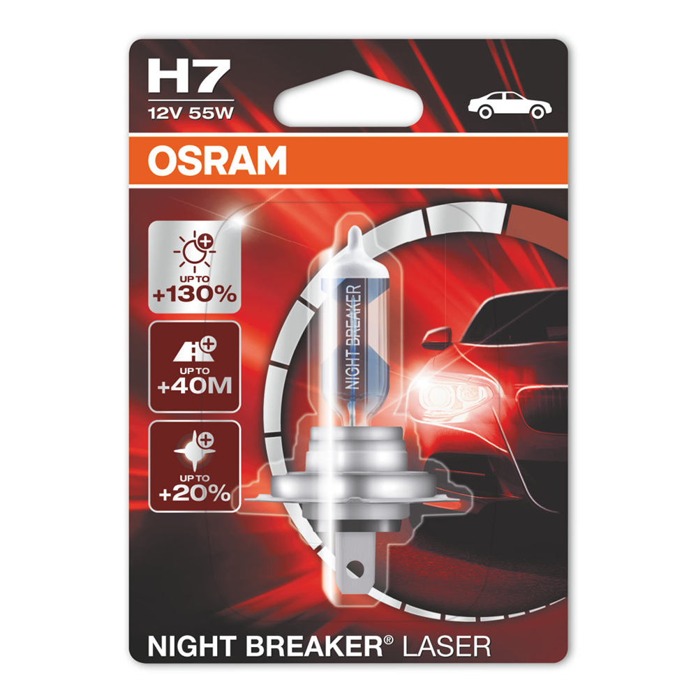 Галогенная лампа OSRAM 64210NBL-01B H7 Night Breaker Laser — лампа предназначена для использования в ближнем и дальнем освещении автомобиля. Night Breaker Laser излучает на 130% больше света по сравнению со стандартными галогенными лампами, световой луч этой лампы на 40 метров длиннее, а свет на 20% более белый. В производстве ламп Night Breaker Laser используют лазерные технологии и добавление ксенонового газа в состав колбы, тем самым улучшается светоотдача. Галогенная лампа OSRAM 64210NBL-01B H7 Night Breaker Laser — это отличное соотношение цены и качества!