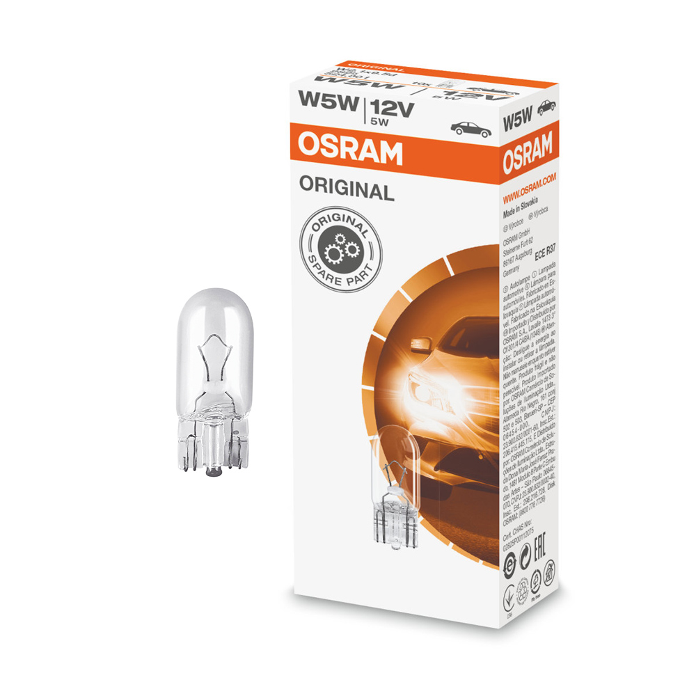 Галогенная лампа Osram W5W 12V 5W 2825 — применяется в сигнальном освещении автомобиля. Практичные, долговечные и экономичные лампы, идеальное решение для замены стандартных автомобильных ламп. Благодаря желтому оттенку свечения водитель будет прекрасно видеть дорожное покрытие при любых погодных и дорожных условиях.