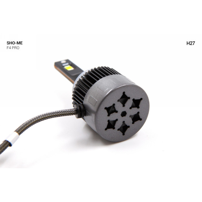 Основные особенности автомобильных Светодиодная LED лампа Sho-Me F4 Pro H27 45W: - компактные размеры, вмещающиеся в любую оптику; - современные LED кристаллы 3570 CSP Chip с высоким коэффициентом мощности; - точный светотеневой предел, для защиты от ослепления встречных машин; - срок эксплуатации свыше 50000 часов.