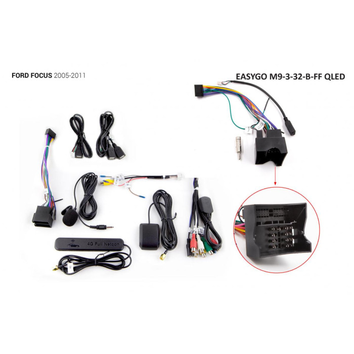 Штатная мультимедийная система EasyGo M9-3-32-B-FF QLED предназначена для установки в автомобиль Ford Focus 2005-2011.