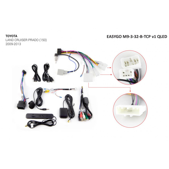 Штатная мультимедийная система EasyGo M9-3-32-B-TCP v1 QLED предназначена для установки в автомобиль Toyota Land Cruiser Prado (150) 2009-2013