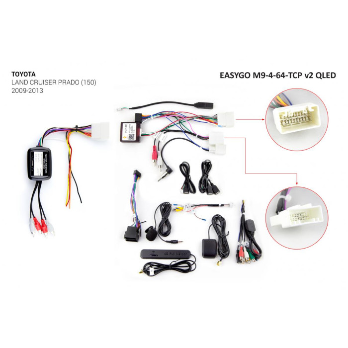 Штатная мультимедийная система EasyGo M9-4-64-TCP v2 QLED предназначена для установки в автомобиль Toyota Land Cruiser Prado (150) 2009-2013