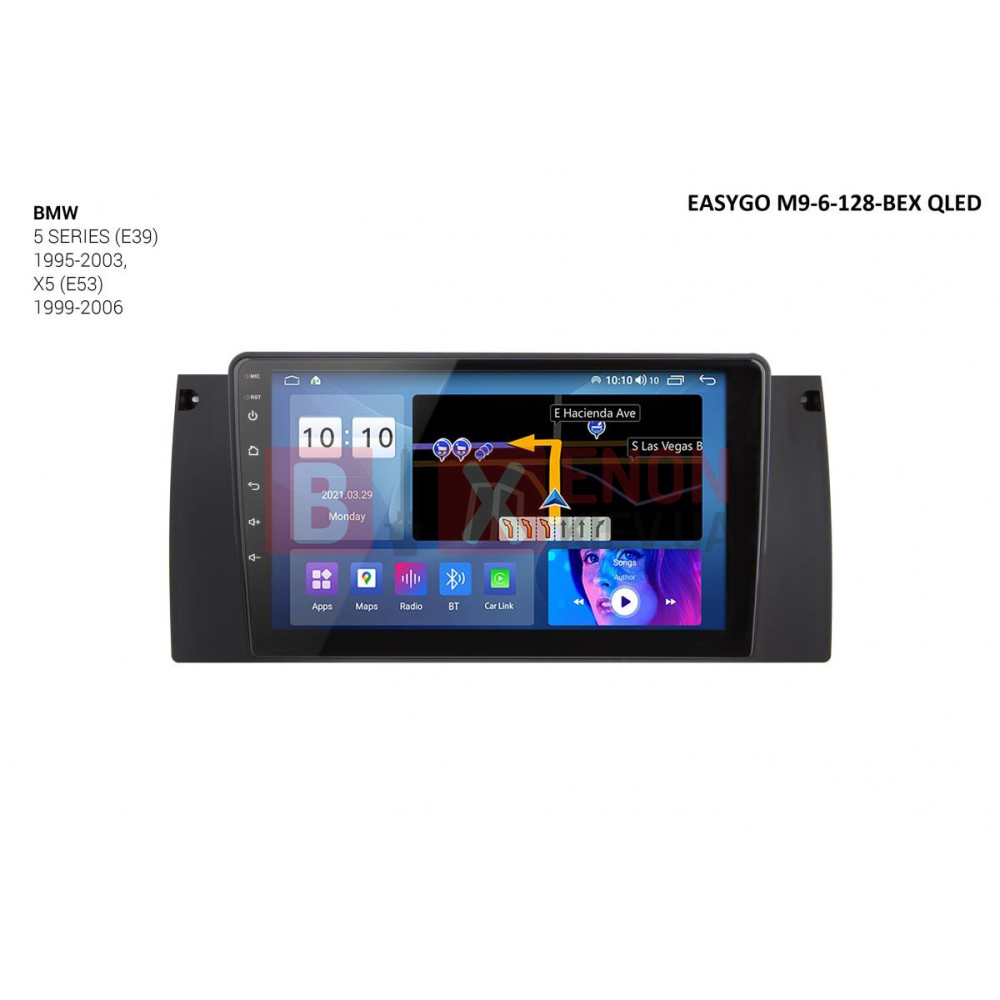 Штатная мультимедийная система EasyGo M9-6-128-BEX QLED предназначена для установки в автомобиль BMW 5 Series (E39) 1995-2003, X5 (E53) 1999-2006.