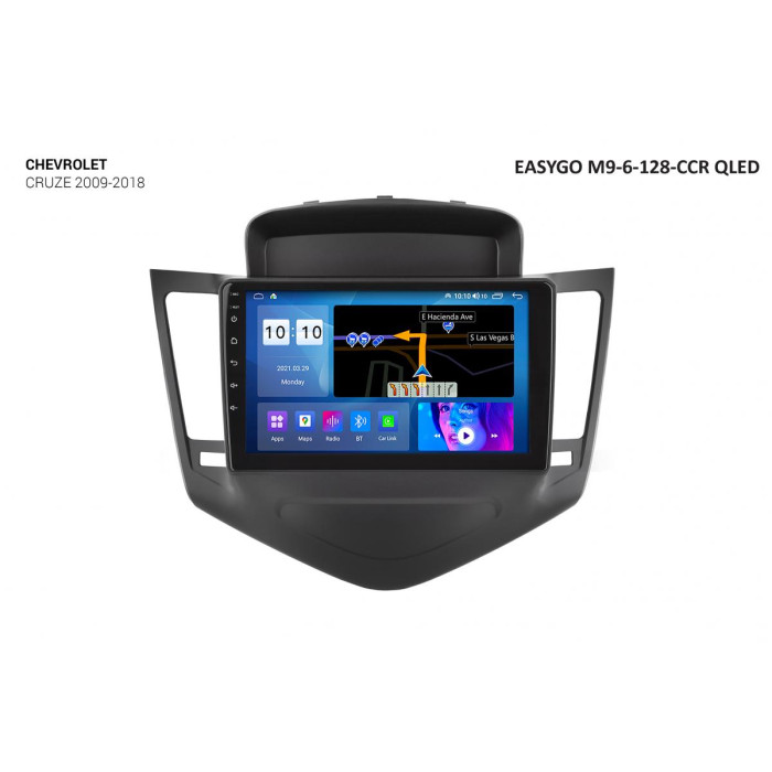Штатная мультимедийная система EasyGo M9-6-128-CCR QLED предназначена для установки в автомобиль Chevrolet Cruze 2009-2018.