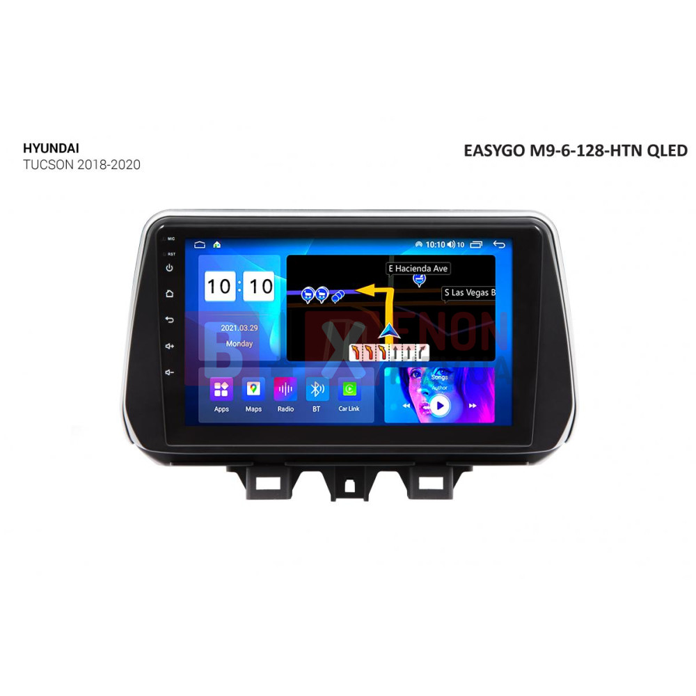 Штатная мультимедийная система EasyGo M9-6-128-HTN QLED предназначена для установки в автомобиль Hyundai Tucson 2018-2020.