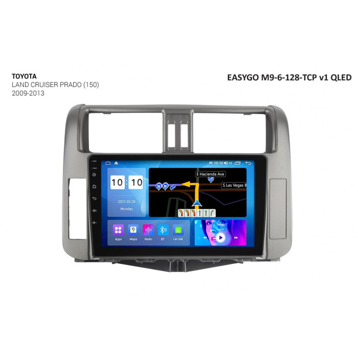 Штатная мультимедийная система EasyGo M9-6-128-TCP v1 QLED предназначена для установки в автомобиль Toyota Land Cruiser Prado (150) 2009-2013