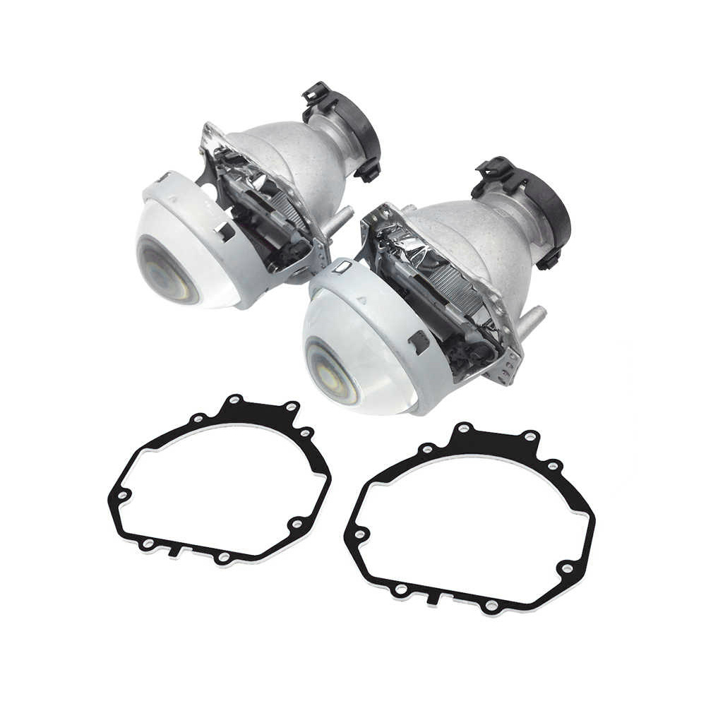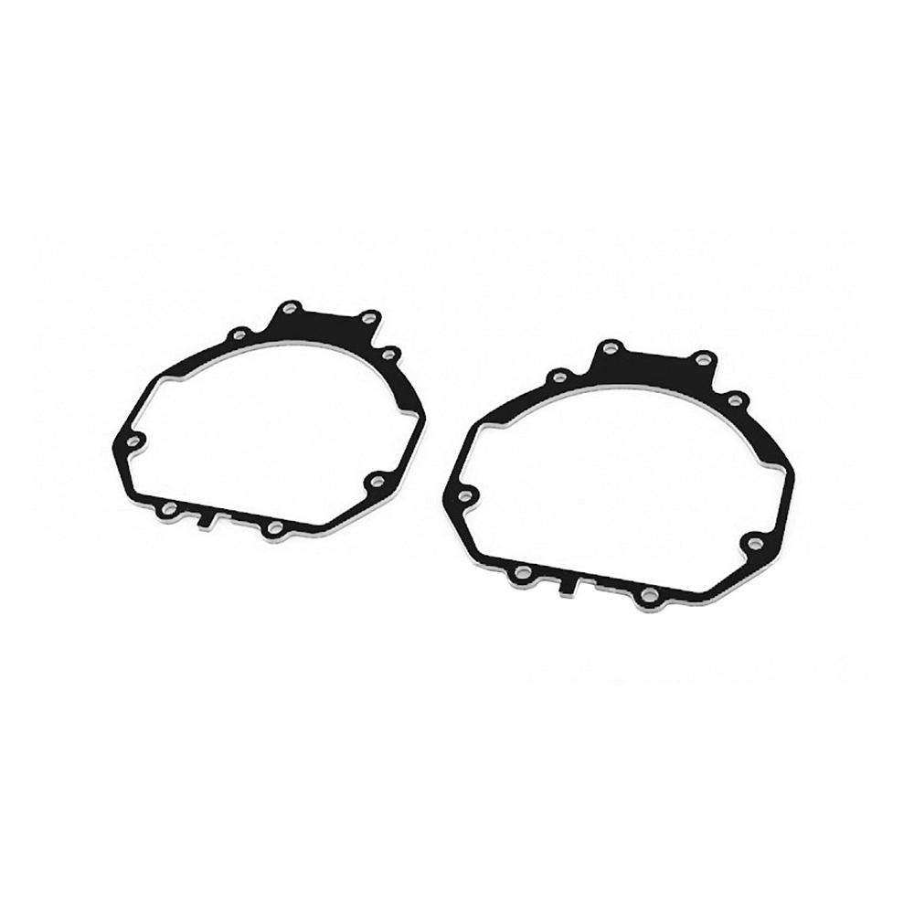 Комплект переходных рамок для замены линз для фар автомобиля значительно упрощает и ускоряет работу по установке или замене новых линз, сохраняет адаптивную функцию линз в фаре и максимально соблюдает все технические размеры и регулирует угол наклона фар автомобиля. При использовании переходных рамок линза становится на заводское место в фаре, соответственно сохраняется горизонт свечения и светотеневая граница свечения линз. Для некоторых автомобилей при использовании переходных рамок требуется минимальная доработка креплений между корпусом посадочного места штатных заводских линз и линз, которые нужно установить в фару автомобиля.