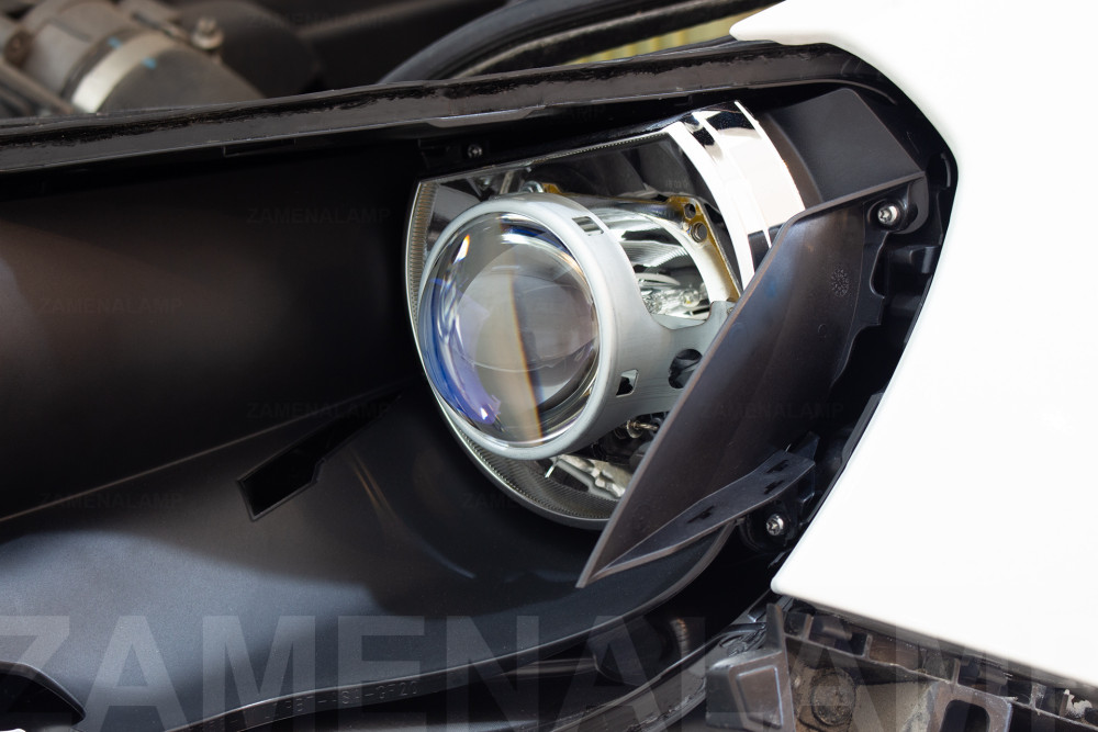 Закрепили биксеноновую линзу в отражателе ближнего света.