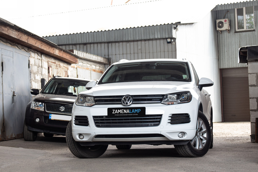 VOLKSWAGEN TOUAREG установка биксеноновых линз Hella 5 Blue