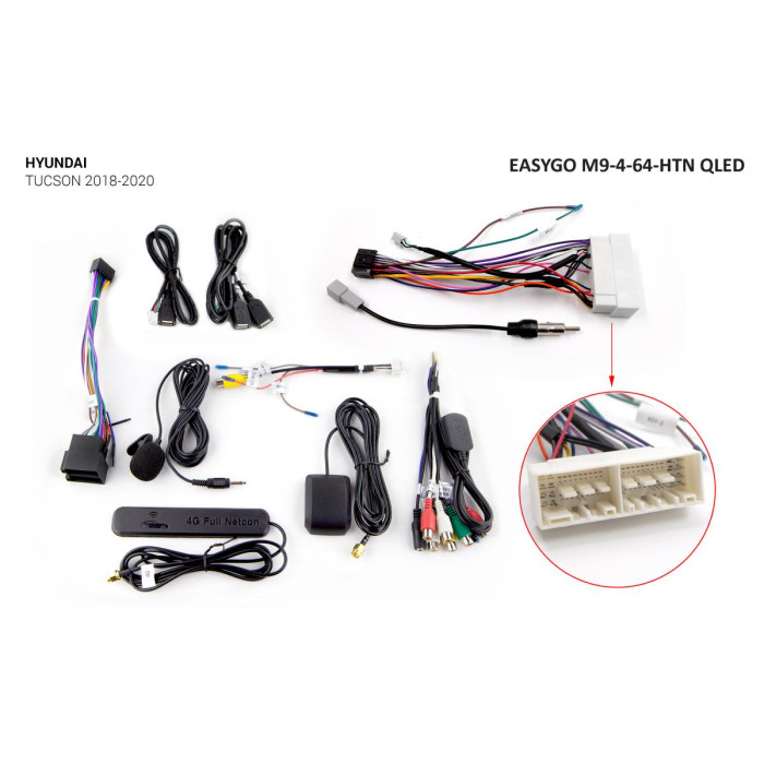 Штатная мультимедийная система EasyGo M9-4-64-HTN QLED предназначена для установки в автомобиль Hyundai Tucson 2018-2020.