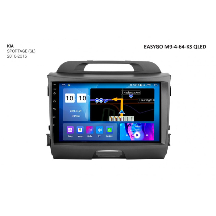 Штатная мультимедийная система EasyGo M9-4-64-KS QLED предназначена для установки в автомобиль KIA Sportage (SL) 2010-2016.