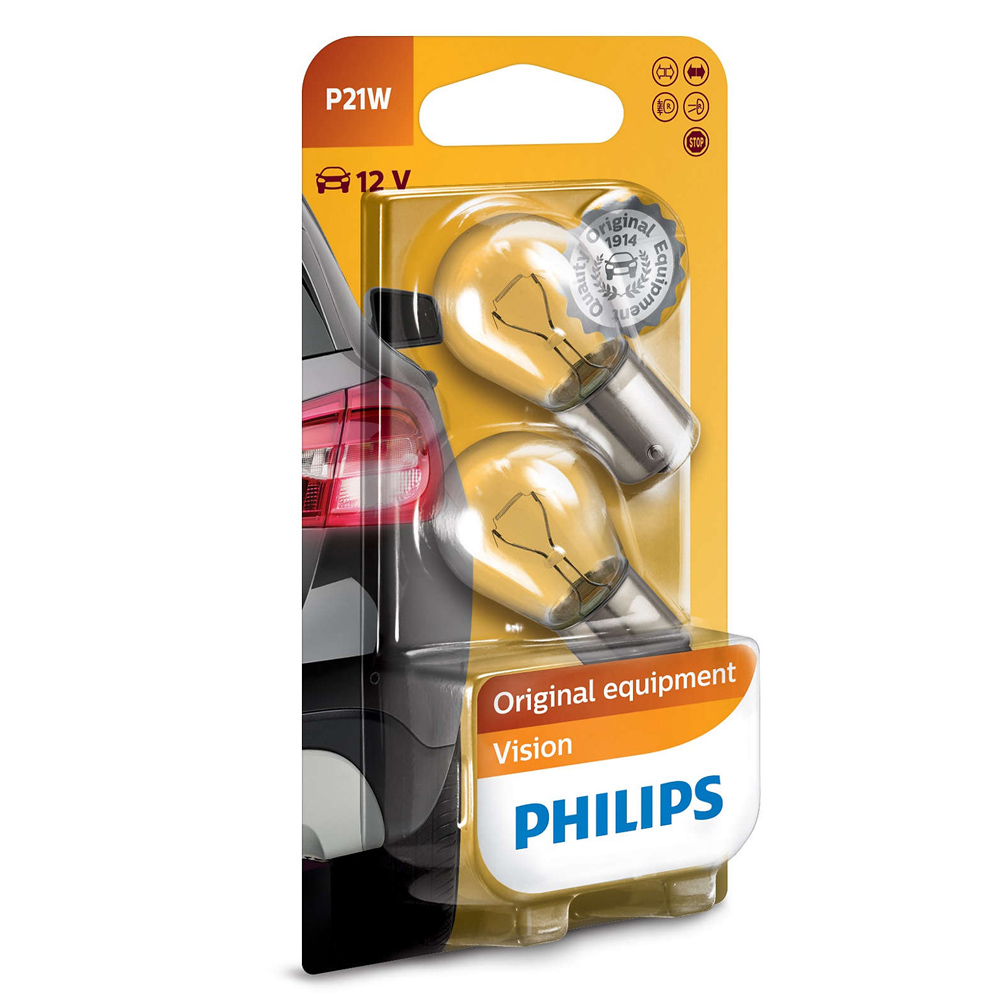 Галогенна лампа Philips P21W Vision 12498B2 - лампа призначена для використання в сигнальному освітленні автомобіля. Лампа забезпечує яскравий жовтий відтінок світіння.