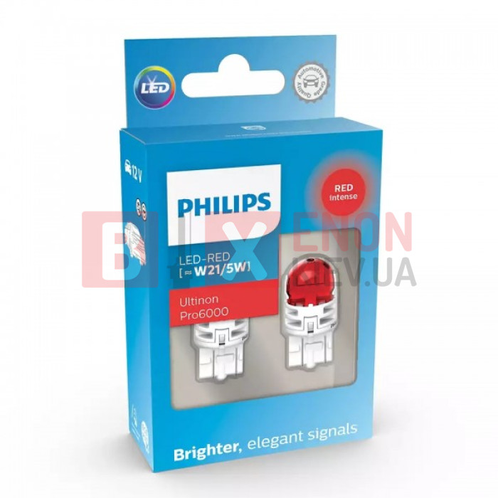 Комплект світлодіодних ламп Philips 11066RU60X2 W21/5W LED Ultinon Pro6000 SI 12V 2.5/0.5 W3x16q red - це модернізовані світлодіодні лампи нового покоління, які відрізняються від попередніх моделей своїми характеристиками, потужністю, формою корпусу і споживанням енергії. При заміні стандартних галогенових ламп на світлодіодні лампи Philips серії Ultinon Pro6000 не виникне питань заміні ламп, адже лампи сумісні із більшістю моделями автомобілів. Подовжений строк експлуатації: до 5000 годин, якщо потрібні яскраві та стильні автомобільні світодіодні лампи, але ви не хочете постійно замінювати перегорілі лампи, світлодіодні лампи Philips серії Ultinon Pro6000 підійдуть 100%.Ергономічний дизайн ламп із трьома світлодіодами у лампі Philips Ultinon Pro6000, які рівномірно поширюють світло в додатковому освітленні авто, мають широкий кут поширення променя світло завжди буде скероване туди, де потрібно.