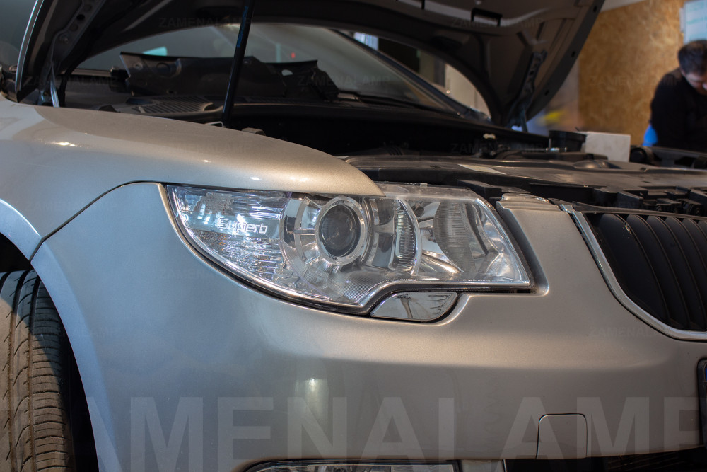 SKODA SUPERB Mk2 заміна штатних лінз на Hella