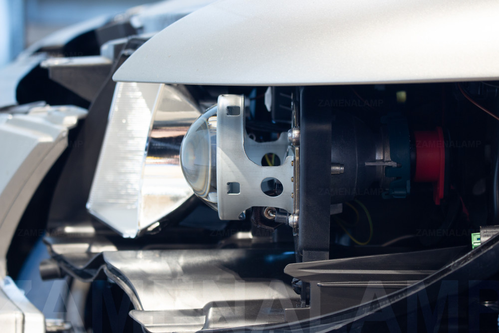 На даному автомобілі з заводу встановлені фари з лінзами під галогенову лампу з цоколем Н7, для покращення світла проведена робота по заміні лінз на комплект біксенонових лінз з комплектом ксенону з лампою D2S.