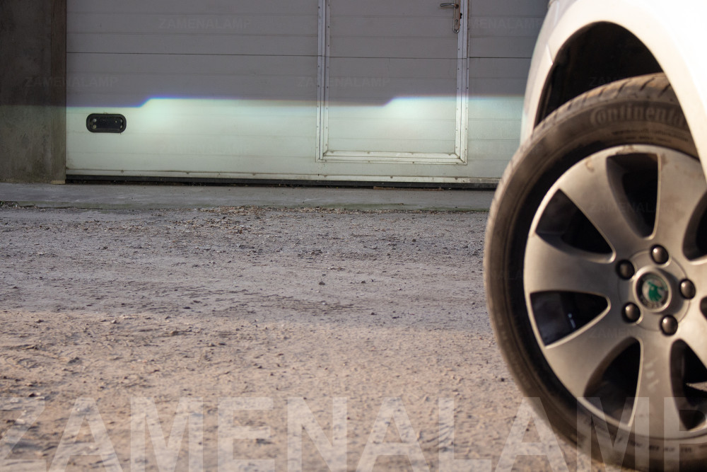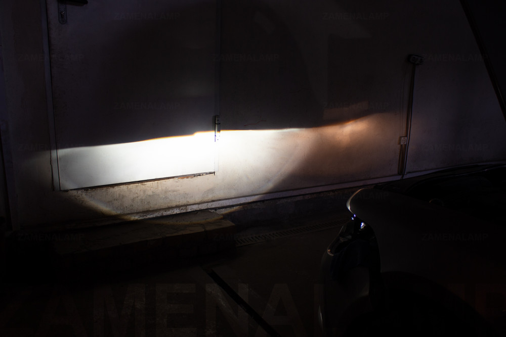 Світло фар автомобіля після проведення робіт з заміни штатних галогенових лінз.