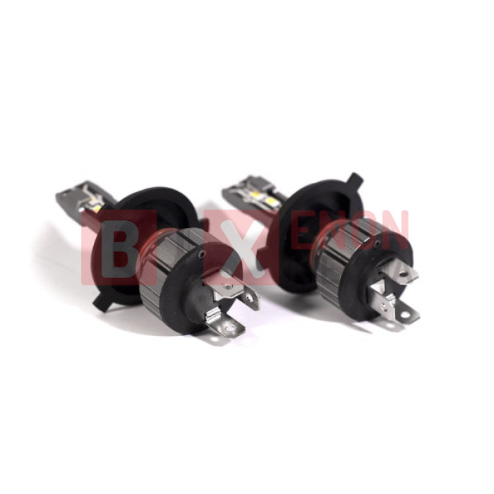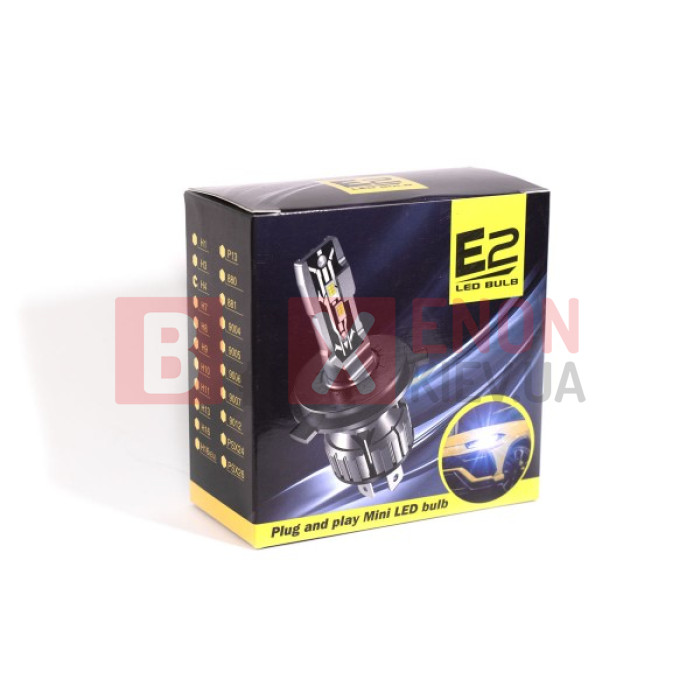 Комплект світлодіодних ламп StarLight E2 H4 9-18V 36W P14,5s chip 3570 6500K - призначені для встановлення в рефлекторну або лінзовану оптику автомобіля. Завдяки компактним розмірам ламп, є можливість встановлення комплекту світодіодних ламп практично на будь-який автомобіль. Завдяки збалансованій потужності та пасивному охолодженню ламп, збільшений ресурс роботи комплекту.