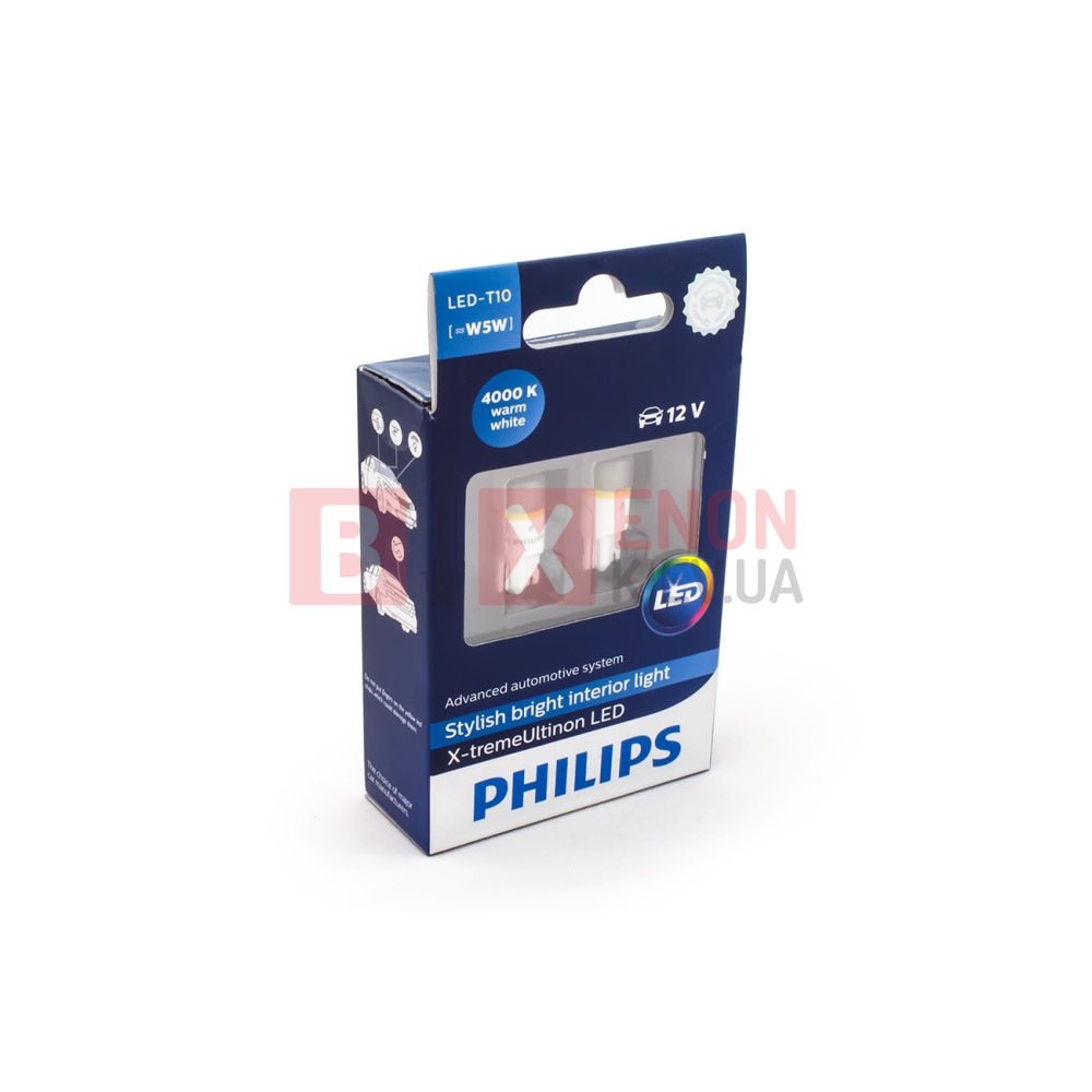 Комплект світодіодних LED ламп Philips LED T10 W5W 4000K